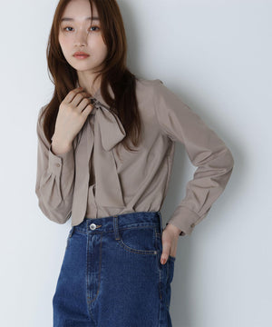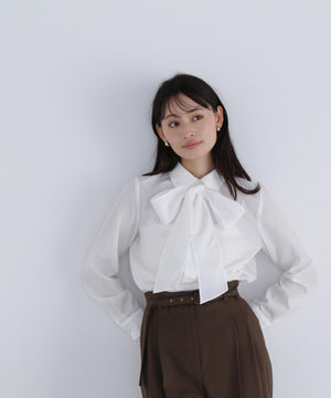 シャツカラーリボンブラウス