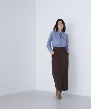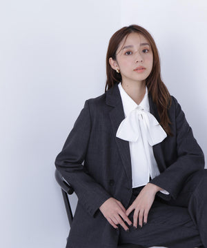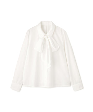 トレンドのシャツ襟にリボンタイを組み合わせて、首元を華やかに見せてくれるブラウス。共地リボンタイは取り外しでき、シンプルなデザインとしても着られます。ジャケットなどのアウターインにも映えるリボンタイデザインは、ONにもOFFスタイルにも着回せます。