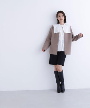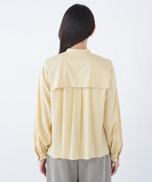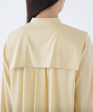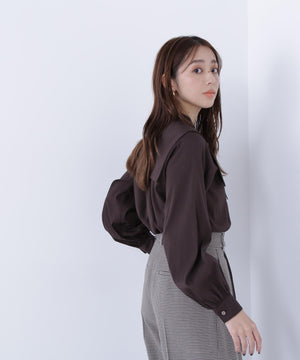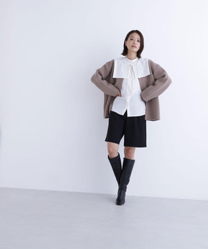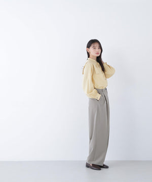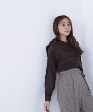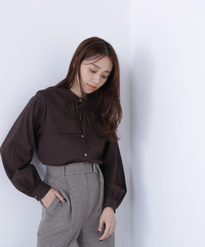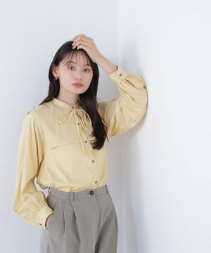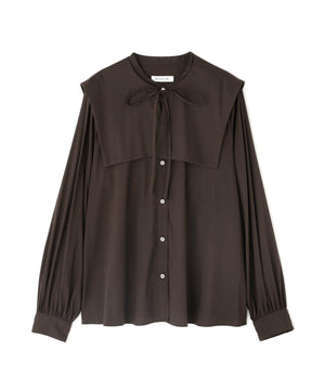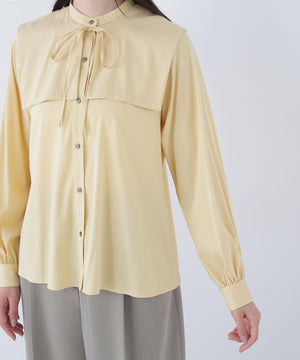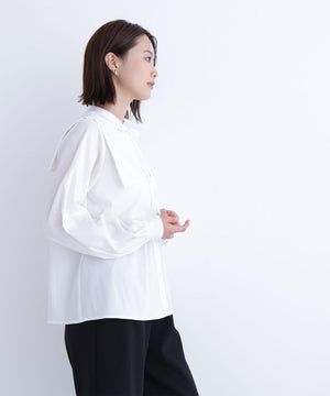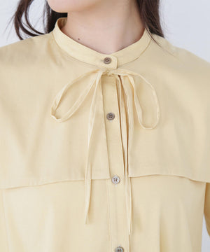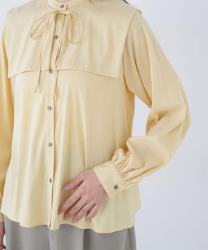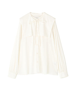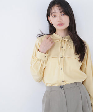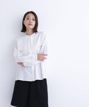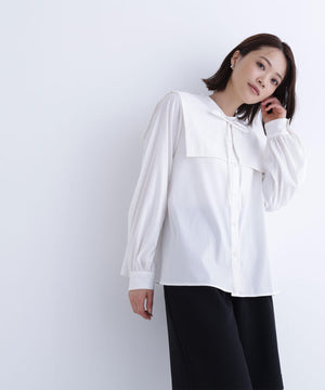 大きなスクエア襟が特徴のブラウス。襟は前リボンで取り外し可能、プレーンなシャツとしても着こなせます。華奢なリボンもデザインポイント。カーディガンやニットとレイヤードして、ブラウスの襟を上に出して見せる着こなしもおすすめです。