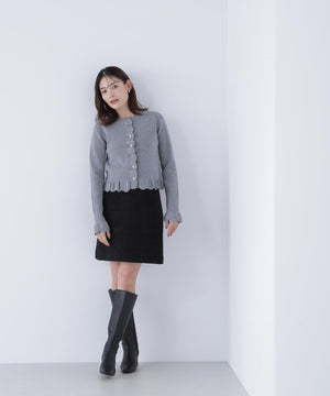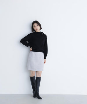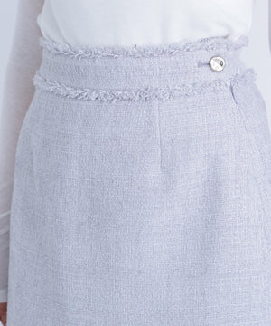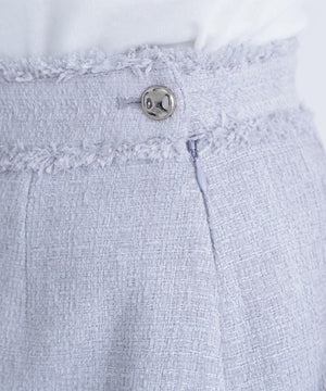上品なツイード素材を使用したミニスカート。程よい厚みのある素材でシルエットを美しくキープします。ウエストにあしらったゴールドカラーのボタンが高級感とアクセントをプラス。コンパクトな丈感で脚長効果を期待できます。トップスインしてキレイめにも、オーバーサイズのトップス合わせでカジュアルスタイルにも着回せます。