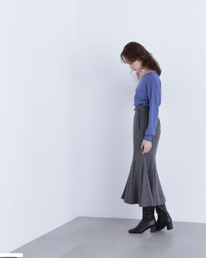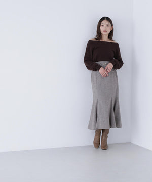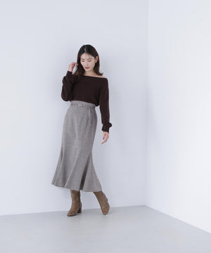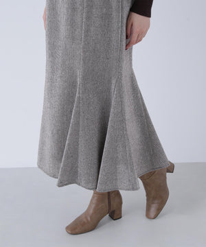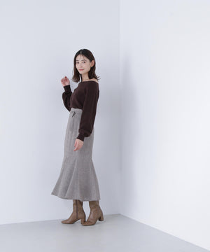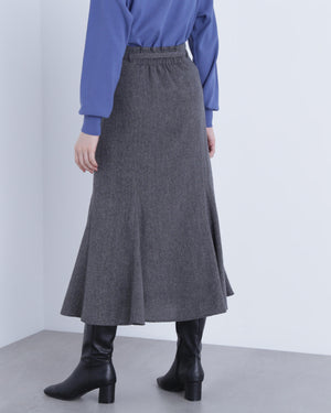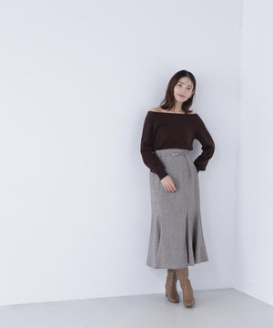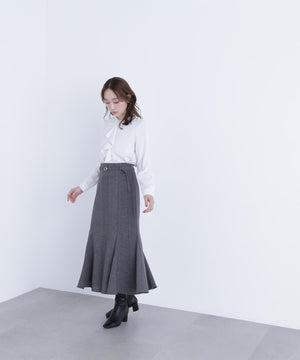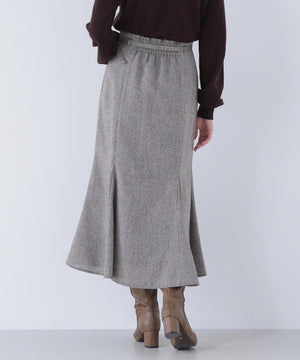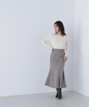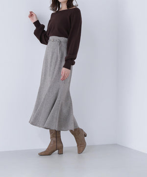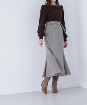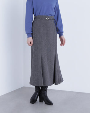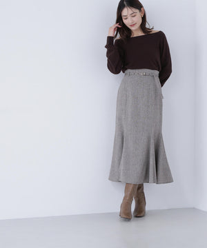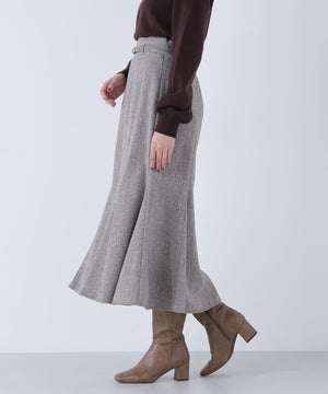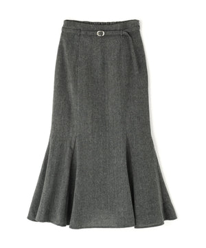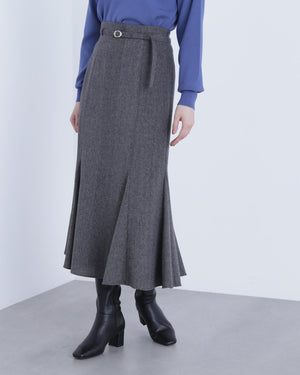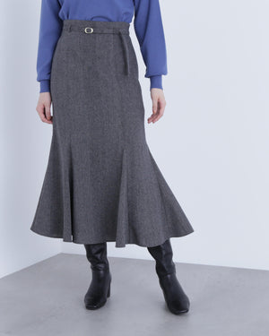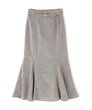 シーズンライクなツイード素材を使用したマーメイドスカート。共地ベルトを付けたハイウエストデザインで、メリハリのあるシルエットを叶えます。きらっと光るゴールドカラーのバックルもポイント。裾はマチを取ったハギを入れているので、動くたびに華やかな揺れ感を演出します。ジャケットやブラウスと合わせた、キレイめなコーディネートがおすすめです。