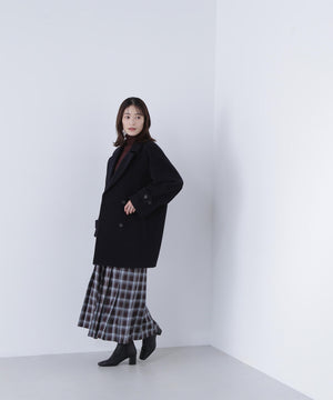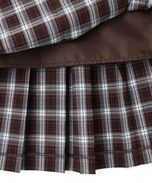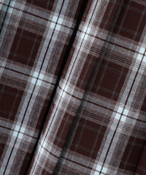 深みのある茶系チェックが、秋冬らしいクラシカルさを演出しつつ、軽やかな素材感で重く見えない仕上がりです。