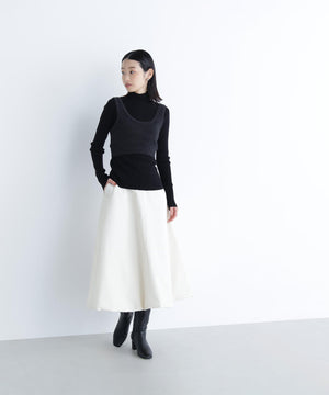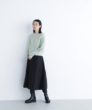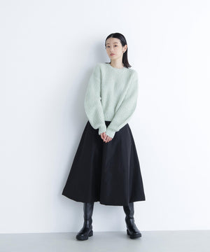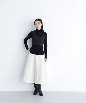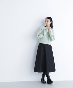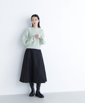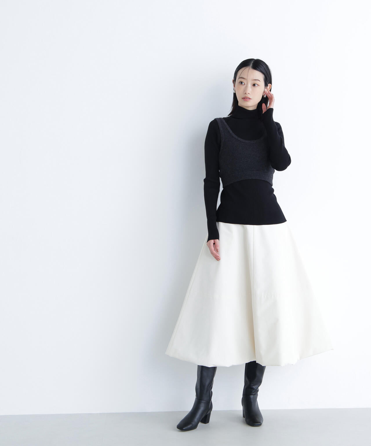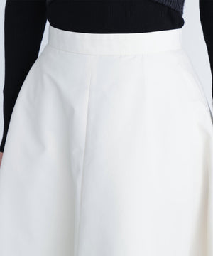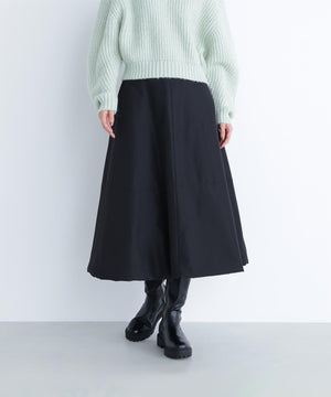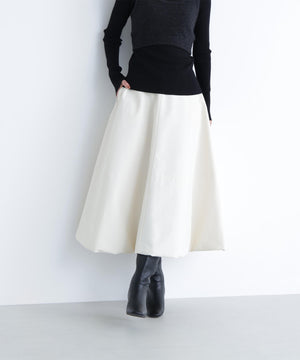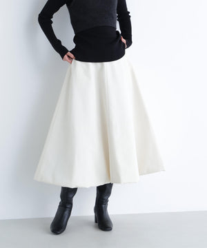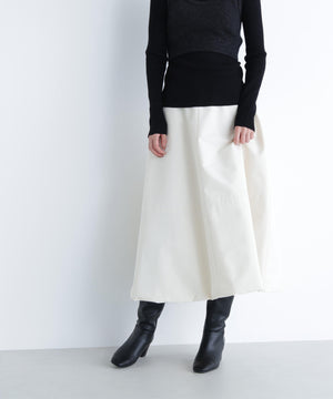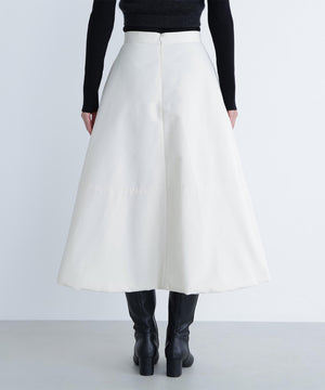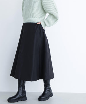 中綿入りで程よいボリューム感のあるシルエットが魅力のフレアスカート。タフタ素材ならではのハリ感が、構築的なシルエットを演出します。ウエストまわりはすっきりしているのでスタイルアップも叶えます。一枚で主役級の存在感を放つ、大人のための上品スカートです。