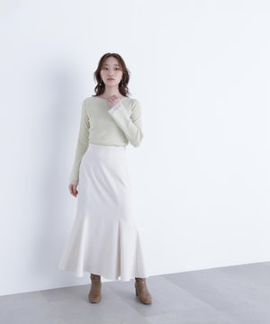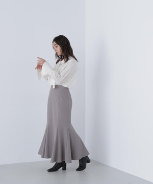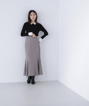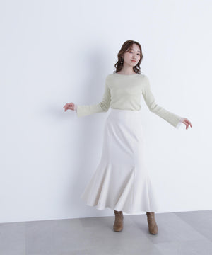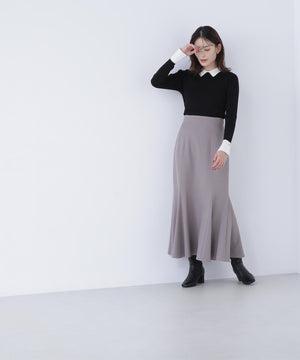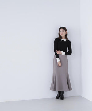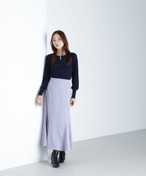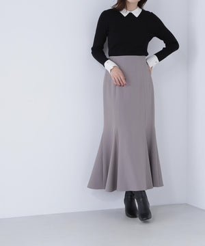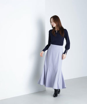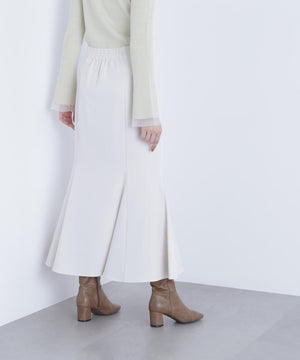 NBBオリジナルカラーを加えてアップデート。縦の切り替えと裾にマチを取って裾幅を出したマーメイドスカートは腰まわりはすっきりと、後ろウエストはゴム仕様になっているのでストレスフリーな着心地です。動くたびにふわりと揺れるすっきりとしたシルエットを演出。ジャケットやジレと合わせてもバランスよく決まります。