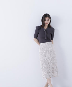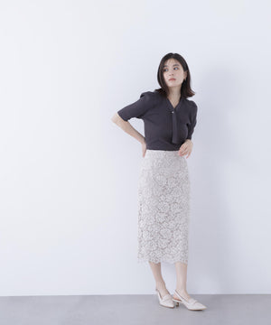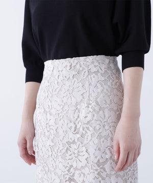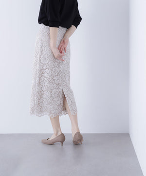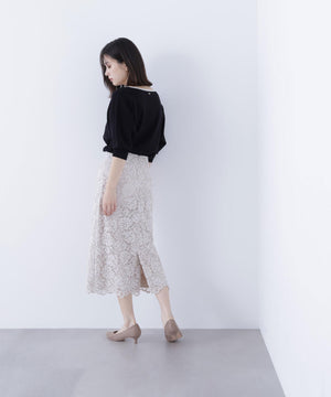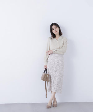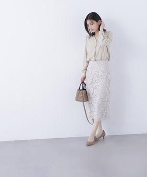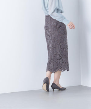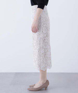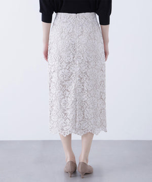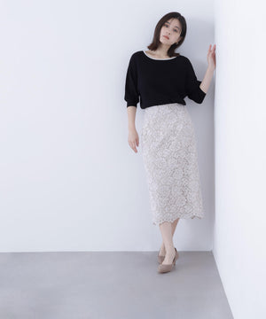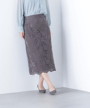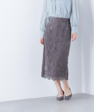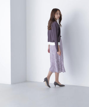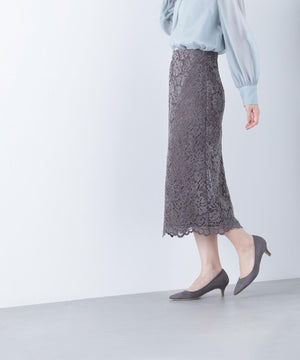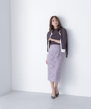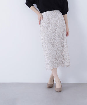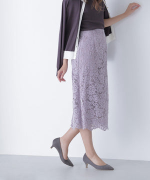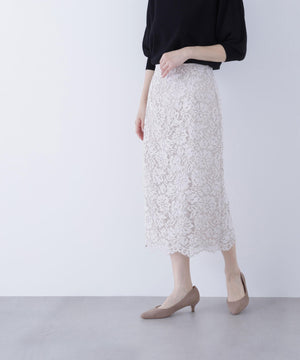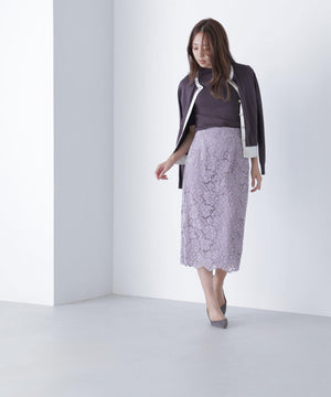 NBB定番!はき心地が良く、秋らしいモールレースを使用した暖かみのあるタイトスカート。レース柄にモール糸を使用しているので暑すぎず、秋から長く着やすいです。すっきりとしたウエストライン、裾はスカラップデザインで愛らしさを演出。ブラウスもニットプルオーバーも合わせやすく幅広いシーンで活躍できます。