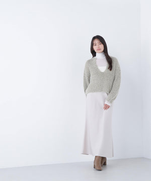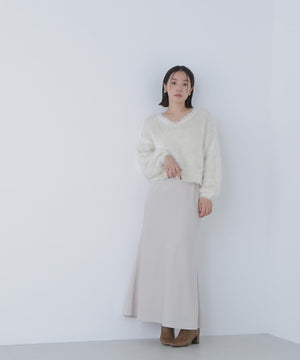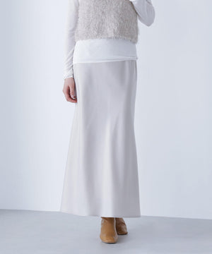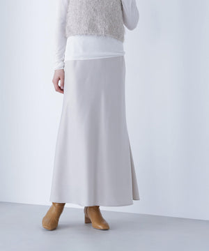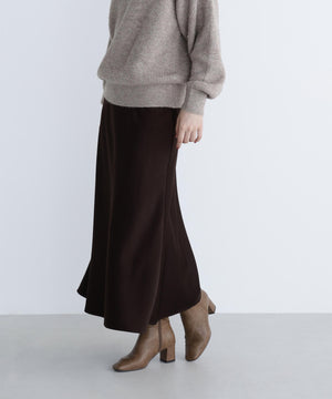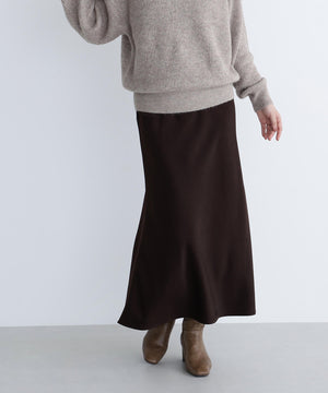 上品な光沢感があり、季節を選ばず着回せるサテンスカート。バイアス使いで自然なドレープ感をだすナローシルエットです。ニットやスウェット、Tシャツなどのカジュアルコーディネートに女性らしさをプラスできる1枚です。