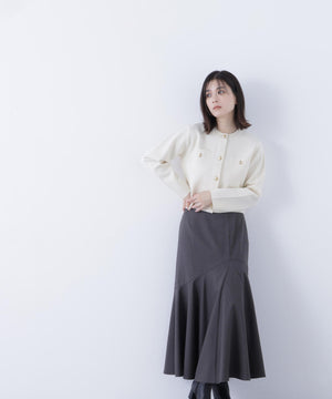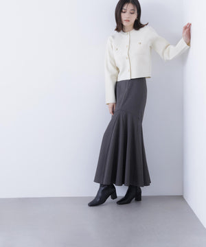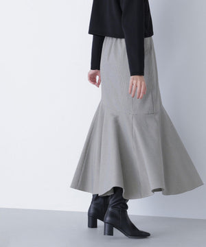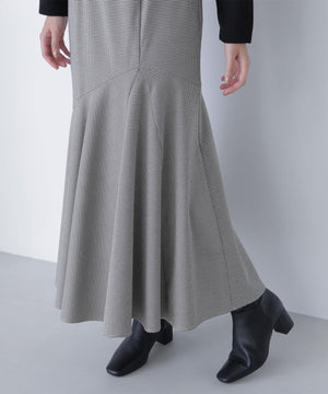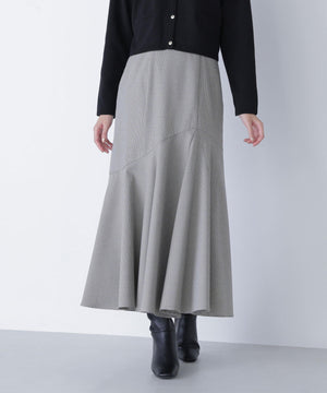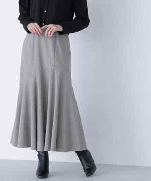 アシンメトリーな切り替えデザインがポイントのマーメイドスカート。裾に向かってマチフレアを入れることで、裾の揺れとボリューム感を出して華やかな印象を叶えます。後ろウエストはゴム仕様でストレスフリーなはき心地。細かい千鳥格子のチェック柄がオトナっぽく、フェミニンなムードで着ていただけます。