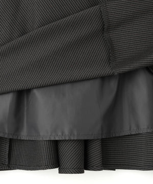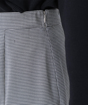 程よくハリ感と肉感のある千鳥格子のチェック柄の素材を使用。体のラインを拾いにくい素材感です。
