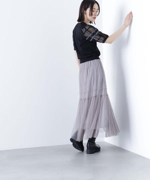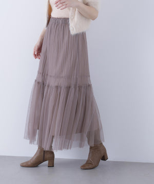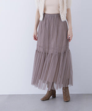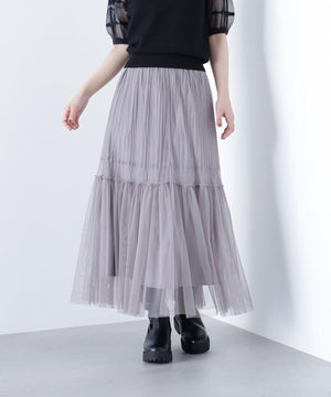 歩くたびに揺れる女性らしいチュールティアードスカート。コーディネートに取り入れるだけで立体感とエアリー感を叶えます。ウエストはゴム仕様なのでリラックスしたはき心地。合わせるトップス次第でロングシーズン着ていただけます。