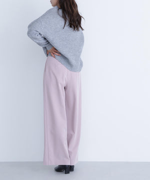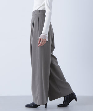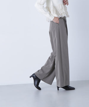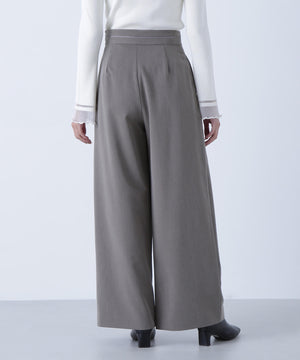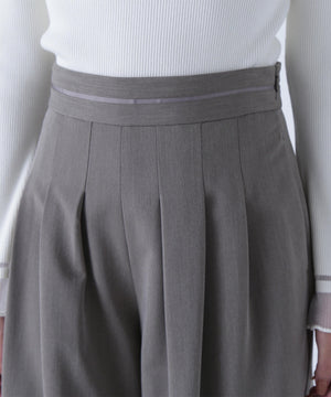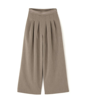 ウエストに入れたグログランテープがアクセントのワイドパンツ。トップスの裾をインした時にグログランテープが引き立つデザインです。ボリュームのあるタックでリラックスムードと、ゆったりと裾幅のあるワイドシルエットで、こなれた雰囲気を叶えてくれます。