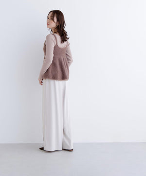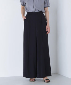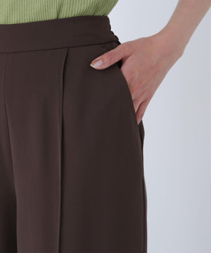 肌離れするワイドシルエットで夏も涼しく着られるリラクシーパンツ。後ろウエストはゴム仕様でイージーに着ていただけます。シンプルなのでプレーンに合わせていただけるデザインです。