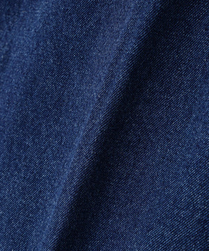 洗いの加工感が綺麗に映えるデニムを使用。デニムの織り目はしっかりありつつも縦にスラブが立ちすぎてない表面感なので加工後もハードになり過ぎず、ブリーチやブラストも全体的に馴染んだ上品な印象です。