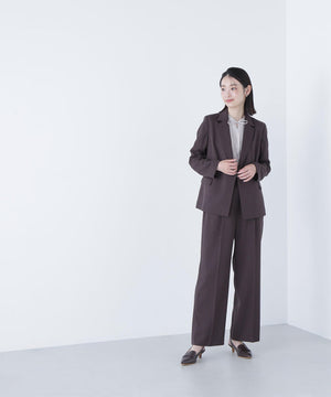 控えめなメランジ感のある梳毛ライクな素材で、きちんと見えしながらこなれ感のあるセットアップが叶います。ニュアンスカラーで、ワンランク上のスーツスタイルを演出。センタープレス入りできちんと見えと脚長効果も期待できます。洗濯機で洗えるのも嬉しい一枚で、同素材のジャケットとのコーディネートがおすすめです。