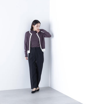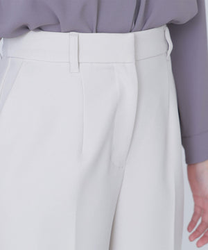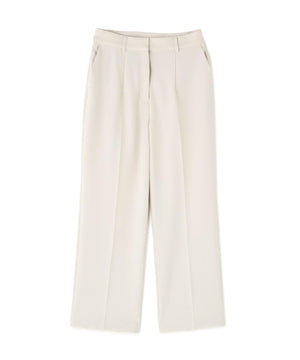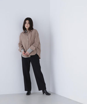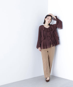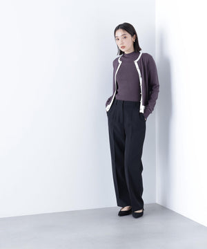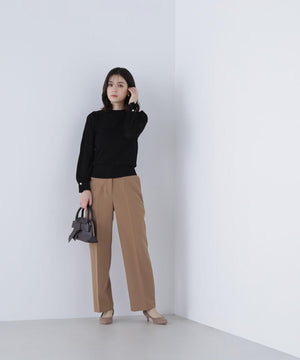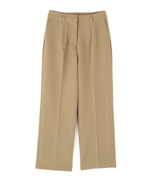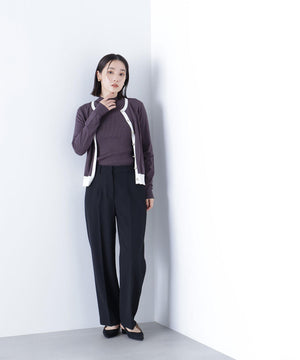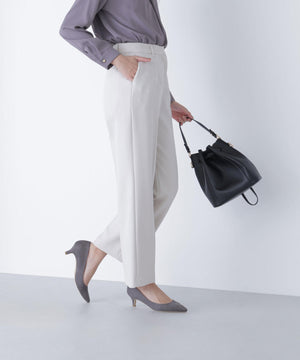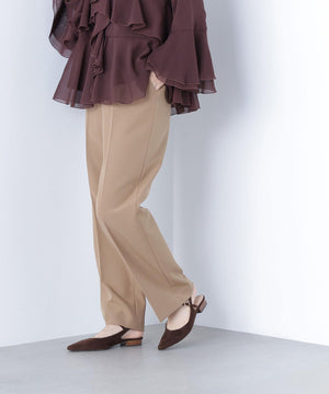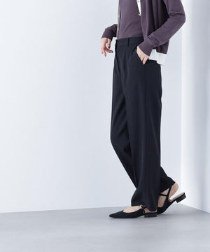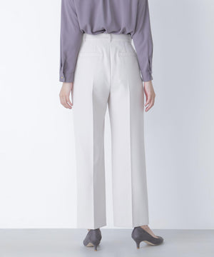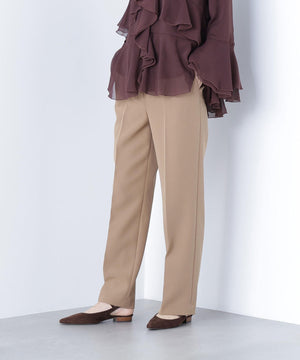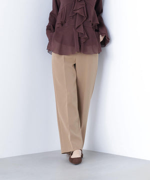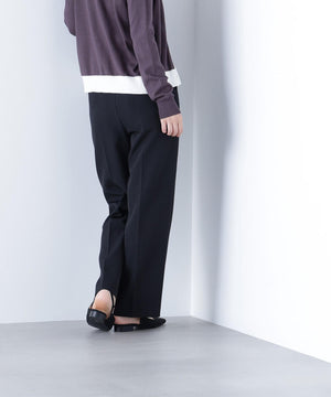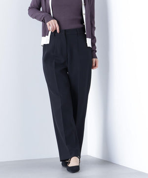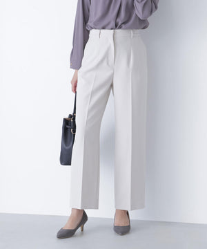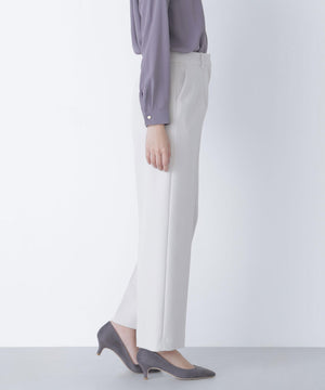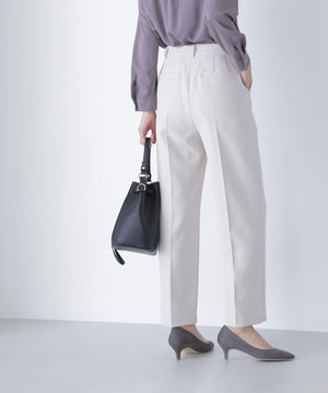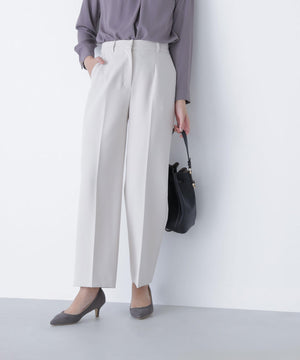 ベーシックに着回せるストレートシルエットのパンツ。ノータックでお腹まわりがすっきりとしたデザインです。センタープレスが縦ラインを強調し、脚のラインをキレイに演出。裏地はなく、やさしいストレッチ感のあるはき心地です。