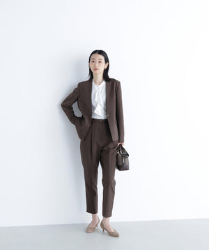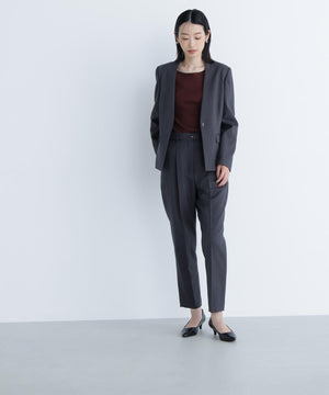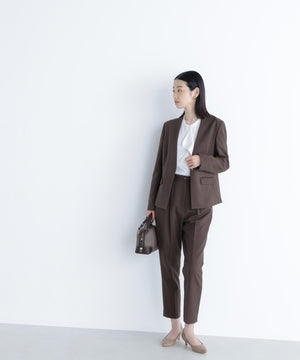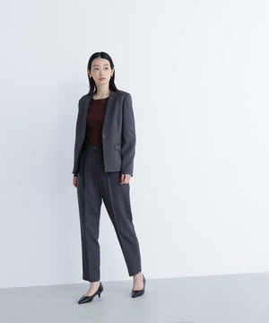 しなやかで軽やかな風合いのきちんと感と快適さを両立した梳毛ライク素材を使用。