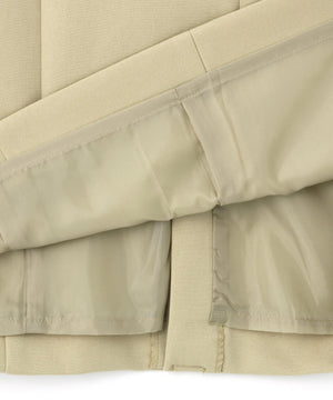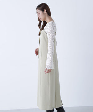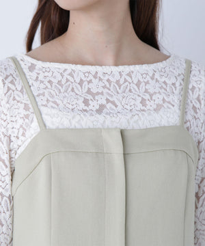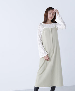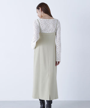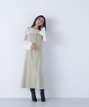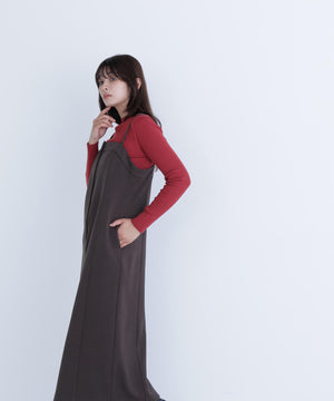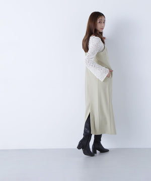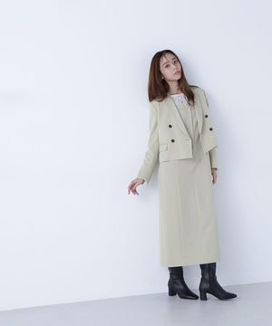 同素材のショートジャケットとセットアップスタイルが叶うキャミワンピース。セットアップでも単品使いもできる着回し力が高いデザインは、ONにもOFFスタイルにも活躍します。こちらのキャミワンピースは、パネル切り替えを入れてウエストをやさしくシェイプしたナローシルエット、後ろにセンターベンツを入れました。肩紐は長さ調節できます。