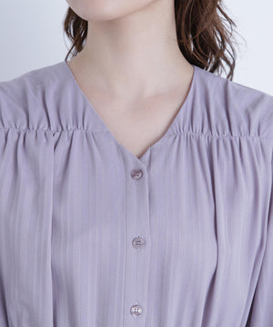 軽やかな風合いのシャドーストライプ柄素材を使用。