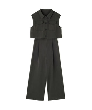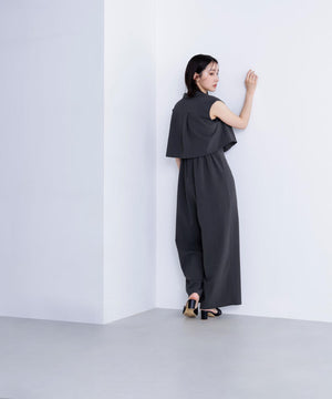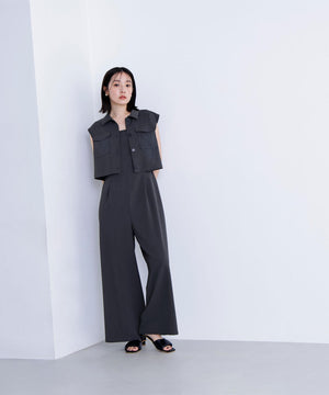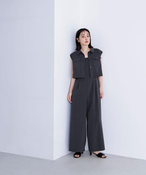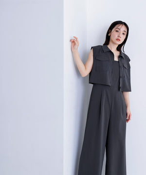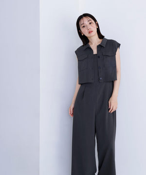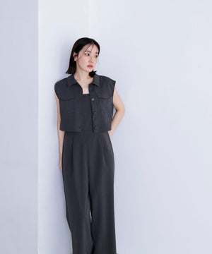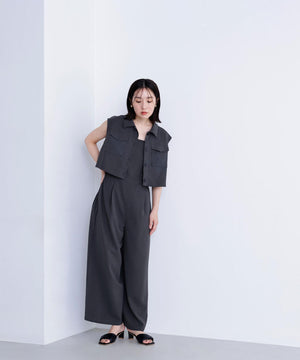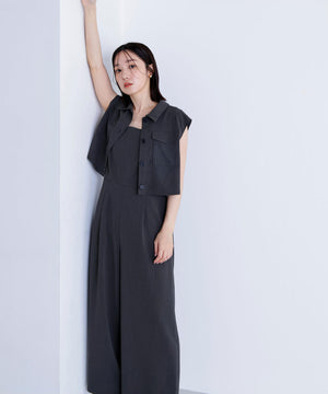 ショート丈のシャツとオールインワンのSETUPアイテム。それぞれ単品使いもしやすく、コーディネートの幅が広がります。キャミタイプのオールインワンはぐるりゴム仕様でイージーにはけるデザイン。肩紐は長さ調節できます。