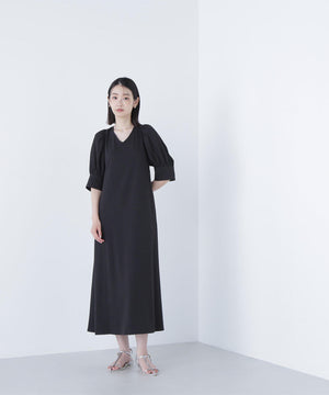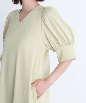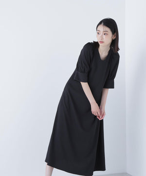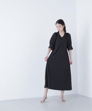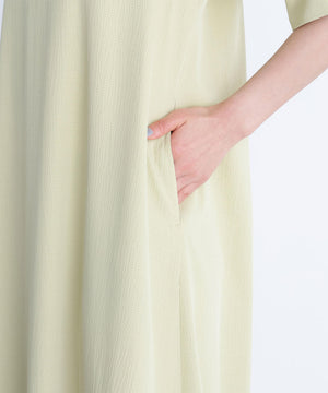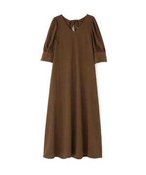 すっきりとしたVネックとサックラインがポイントのワンピース。バックリボンデザインでラウンドに開いており、抜け感のある着方ができます。便利なスラッシュポケット付きで、ウエストマークがなく着脱も簡単でゆったりと着ていただけます。