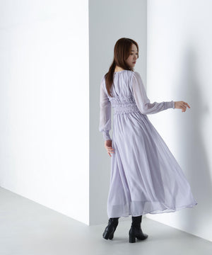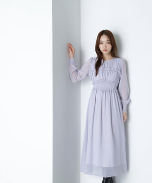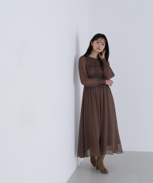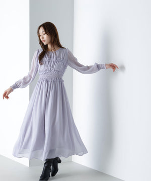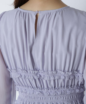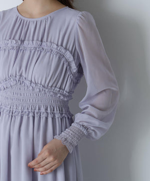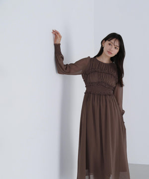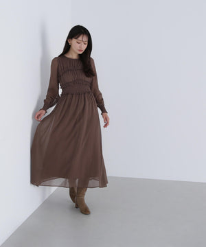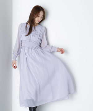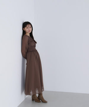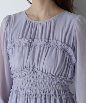 一枚でコーディネートが決まる上品な印象のワンピース。ウエストはシャーリング仕様でフィットしながら、リラックスした着心地です。華やかなフリルとシャーリングが引き立つデザインは、お出かけシーンにもおすすめです。