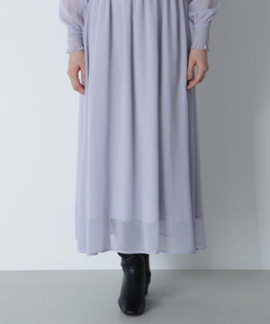 | サイズ | 着丈 | 肩幅 | 袖丈 | バスト最小(ゴム入り) | バスト最大(ゴム入り) | ウエスト最小(ゴム入り) | ウエスト最大(ゴム入り) | 裾周り | スカート丈 |