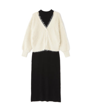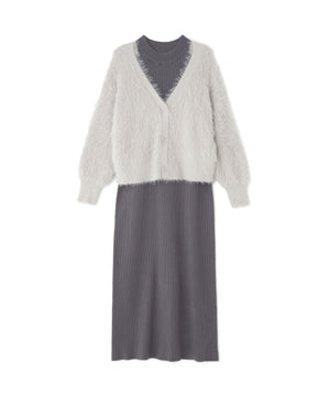 シャギーカーデセットニットワンピース