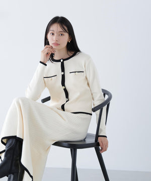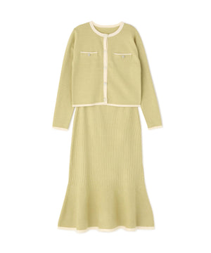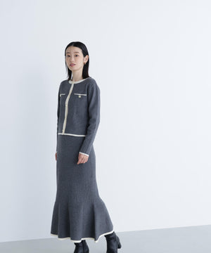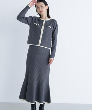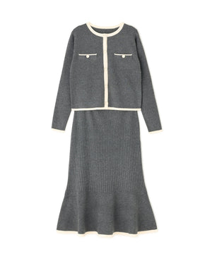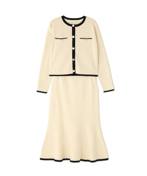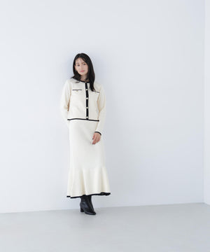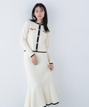 バイカラーニットジャケット&スカート