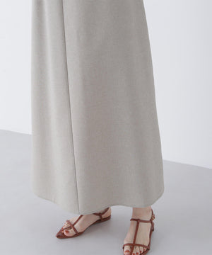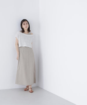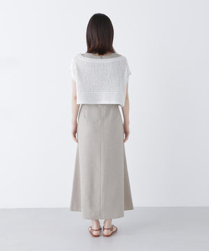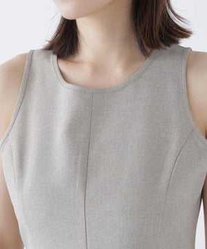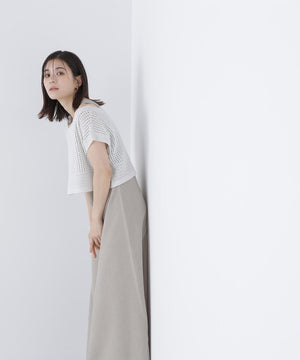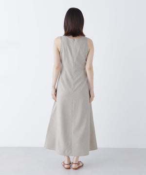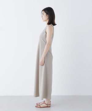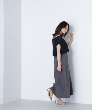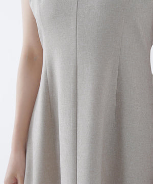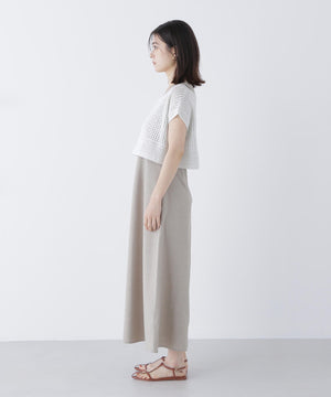 単品使いもしやすいミニマルなデザインと素材がトレンド感を出してくれるセットアップ。Aラインワンピースは、ウエストに適度なくびれを作り、スタイルアップする拘りのシルエットです。ニットをレイヤードすると少しスリット見えする、襟ぐりのバランスにも拘ったデザイン。異素材のコントラストで涼しげなレイヤードスタイルが叶います。