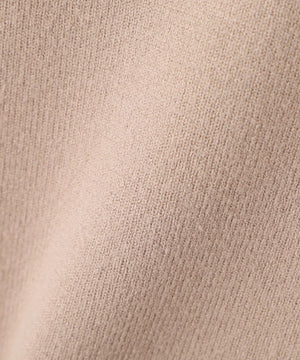 キレイな目面の柔らかいタッチの糸を使用。ニットカーディガンは総針編みで、スカートはリブ編みで編み立てています。