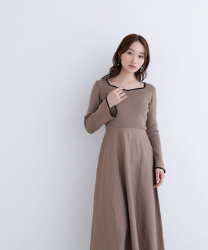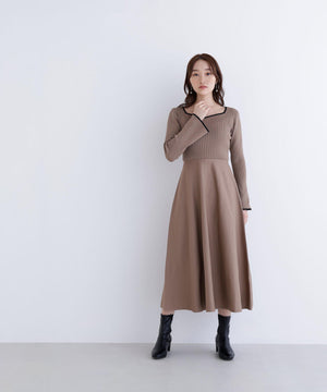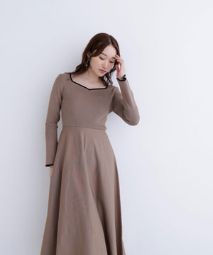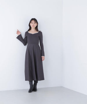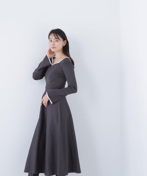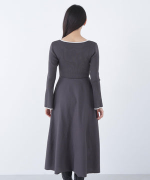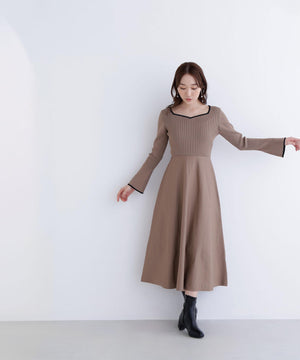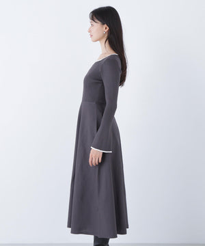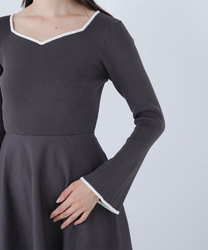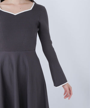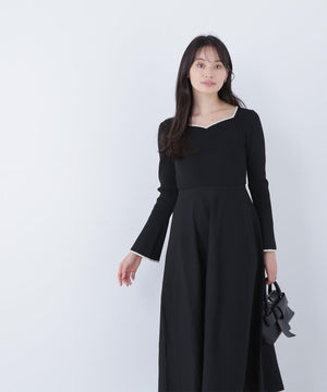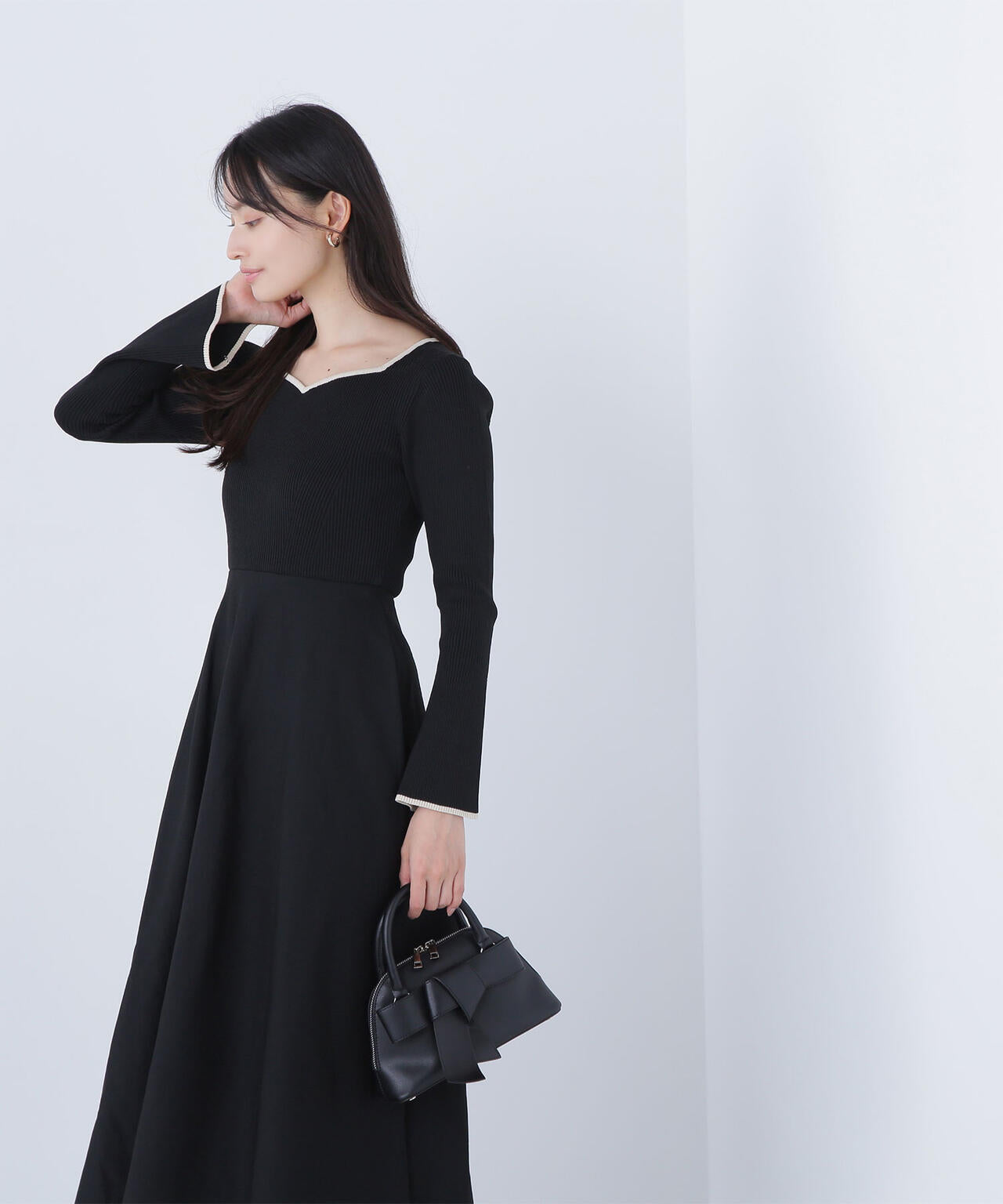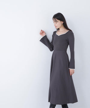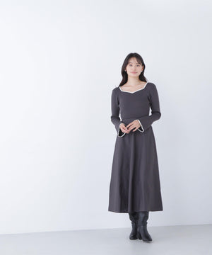昨年人気のあったバイカラーハートネックワンピースのカラーを今年らしくアレンジして再登場!さらりとした着心地のニットワンピースは、鎖骨ラインをキレイに見せるハートネックがポイント。メリハリのあるフレアカフスが、腕をほっそりと見せてくれます。リブ編みにした身頃は程よくフィットし、リラックスした着心地ときちんと感を両立しながら、フィット&フレアシルエットを演出します。