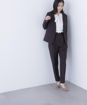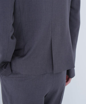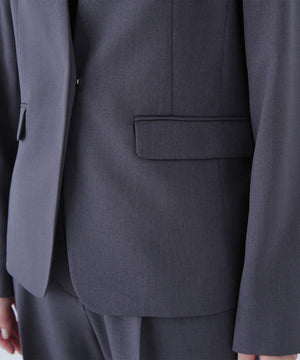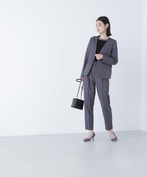 控えめなメランジ感のある梳毛ライクな素材で、きちんと見えしながらこなれ感のあるセットアップが叶います。ニュアンスカラーは、ワンランク上のスーツスタイルを演出。前を開けた時にきらっと光るデザインホックもポイントです。洗濯機で洗えるのも嬉しい一枚で、同素材のパンツとのコーディネートがおすすめです。
