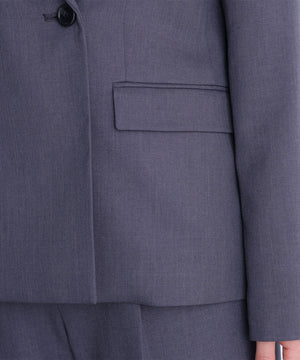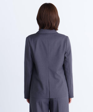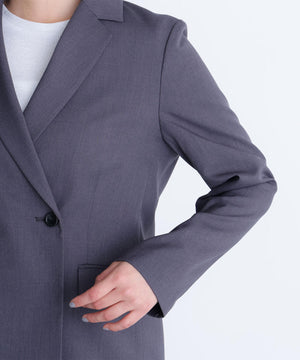 控えめなメランジ感のある梳毛ライクな素材で、きちんと見えしながらこなれ感のあるセットアップが叶います。ニュアンスカラーで、ワンランク上のスーツスタイルを演出。程よくシャープに決まるダブルブレストジャケットです。洗濯機で洗えるのも嬉しい一枚で、同素材のパンツとのコーディネートがおすすめです。