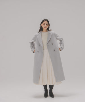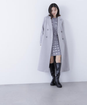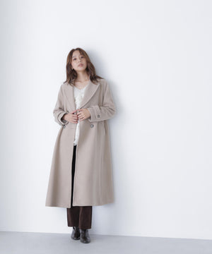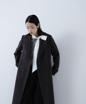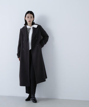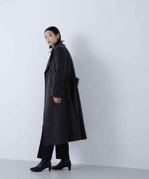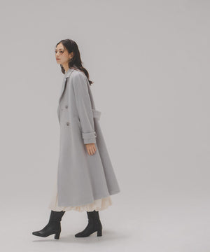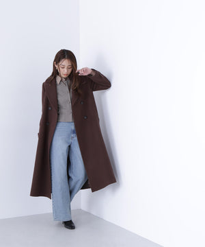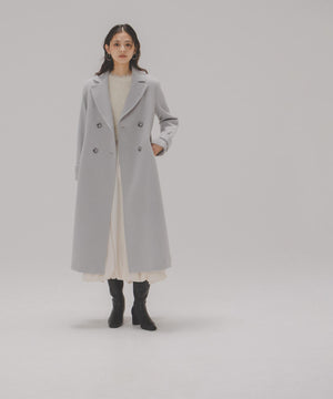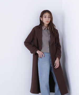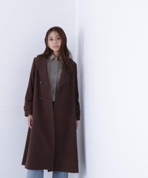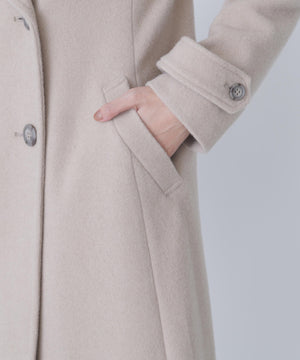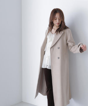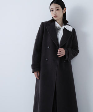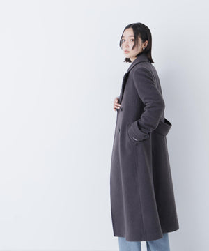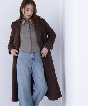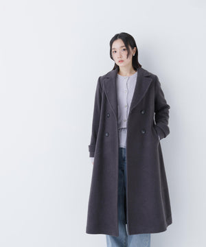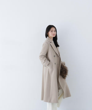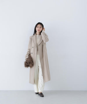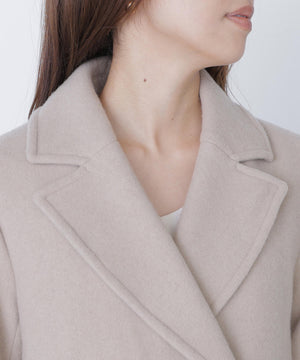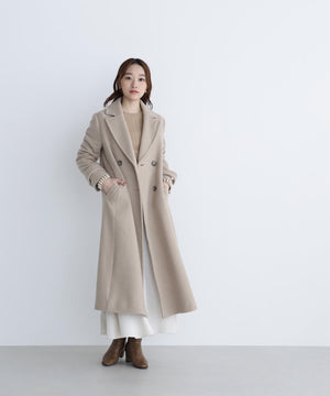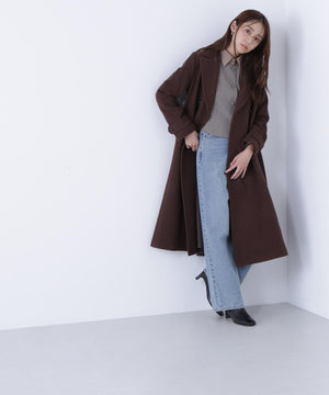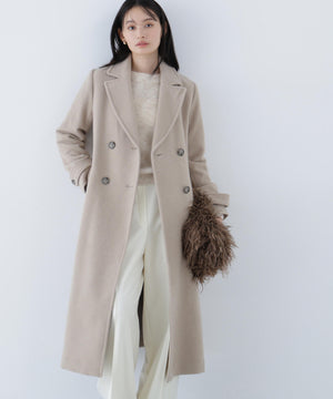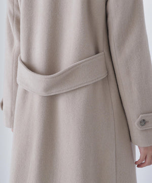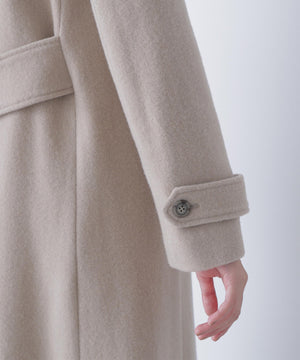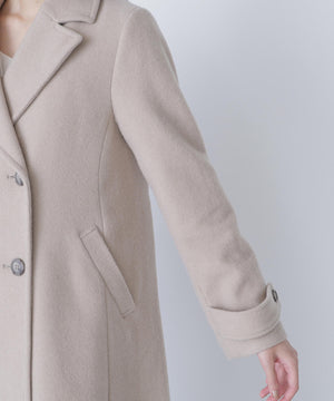 NBB定番人気のチェスターコートを、今年は繊細な毛並みで上品に見える素材にアップデート!配色の効いたマーブルボタンがアクセントになっています。キレイなフレアシルエットが柔らかい印象を演出。後ろに付けたタブベルトによって、ウエスト位置を高く見せてくれます。