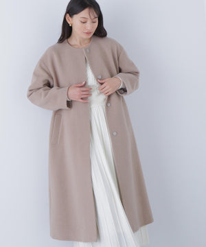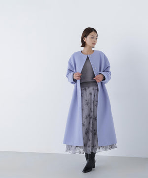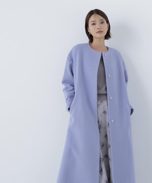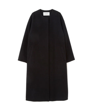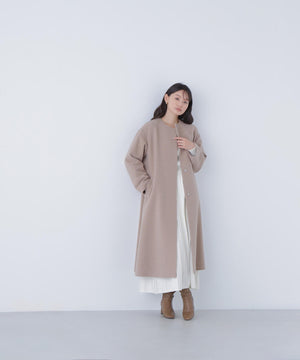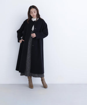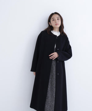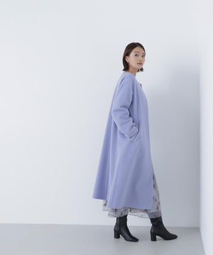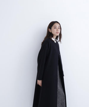 キレイめにもカジュアルなスタイリングにも合わせやすいクルーネックのロングコート。袖はドロップショルダーで、身頃はややオーバーサイズめのシルエットです。ロング丈でもミニマルなデザインのため重くなりすぎず、スタイリッシュな印象。ロング丈のシルエットはバランスが取りやすく、どんなアイテムとも合わせやすい1着です。