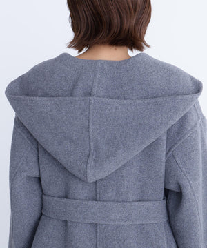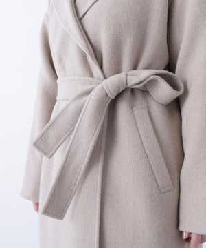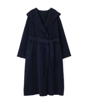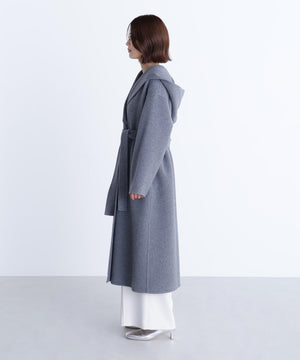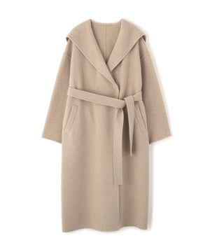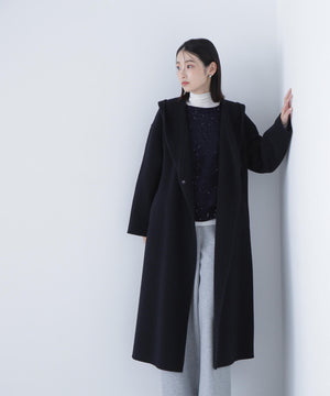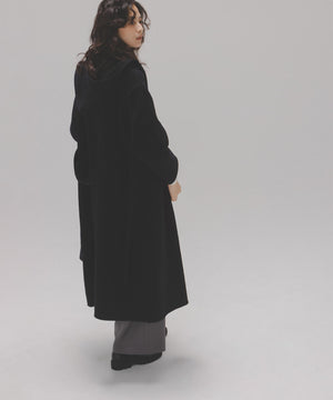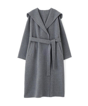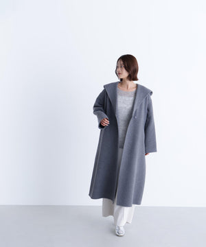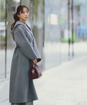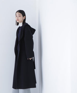 リバーシブル素材を使用したフード付きロングコート。ガウンのようにバサッと羽織るだけで、こなれ感のあるスタイリングが叶います。前を開けて羽織ったり、共地ベルトでウエストマークも可能。ドロップショルダーにルーズなサイズ感なので、オーバーシルエットのニットの上からも着やすいです。裏地がなく季節の変わり目にも重宝するアウターです。