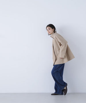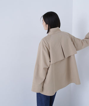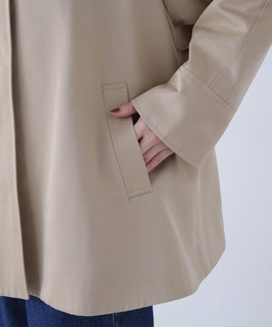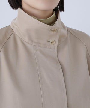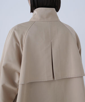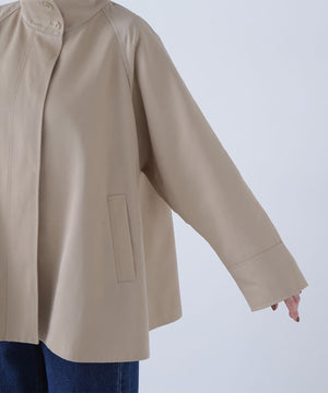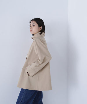 トレンチコート素材を使用した軽やかでハリのあるAラインブルゾン。スタンドネックが顔まわりをすっきりと見せ、上品な印象を叶えてくれます。ミドル丈のシルエットなのでスカートにもパンツにもバランス良く決まる1着。季節の変わり目に活躍してくれるアウターです。