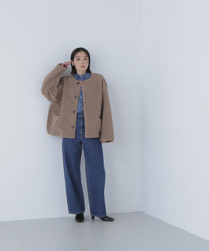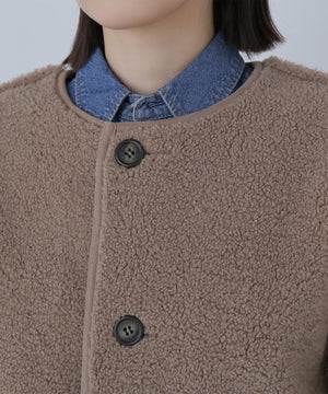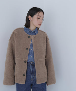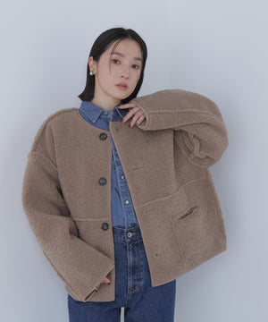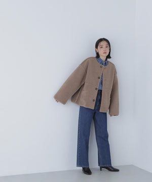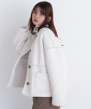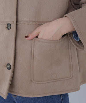 ボアとフェイクスウェードの両方でスタイリングが楽しめるリバーシブルアウター。カジュアルになりすぎないよう挟み出しのディテールに拘ったデザインです。両側からポケットが使えるうれしい仕様。スコッチ系のボタンが優しい印象に見せてくれる1着。ミドル丈なのでボトムスを選ばずに着ていただけます。
