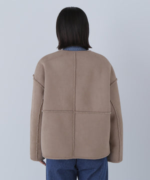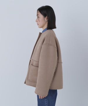 フェイクスウェードとボアのリバーシブルで着られる素材です。