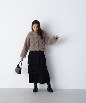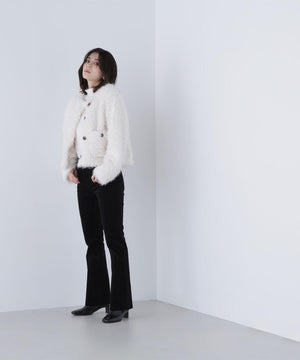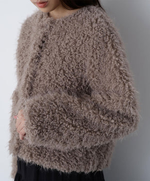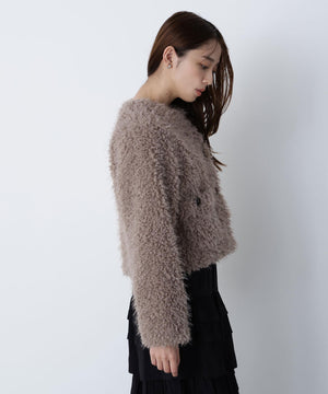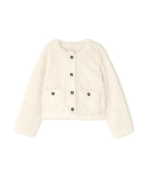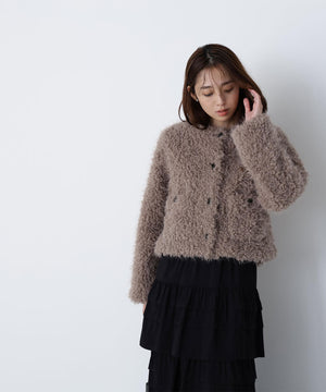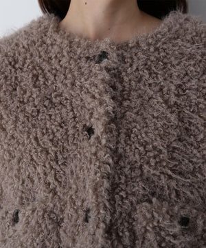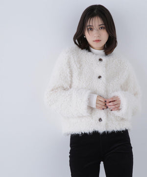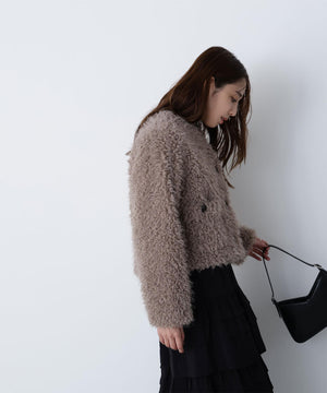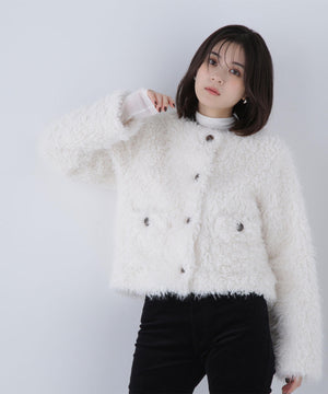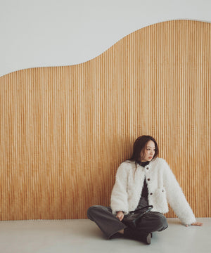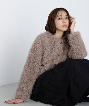 くるくるとしたカーリーなフェイクファーが特徴のジャケット。ボリューム感がありながら重くなく軽やかな着心地です。バランスのとりやすい着丈感で、ぷっくりとしたマーブル調の配色釦がポイント。ゆとりのあるボディなので、中に厚手のニットを合わせてもごわつかずに着ていただけます。デニムと合わせたり、ワンピースの上に羽織るなど、いつものスタイルにプラスワンするだけで季節を先取りできます。