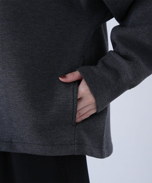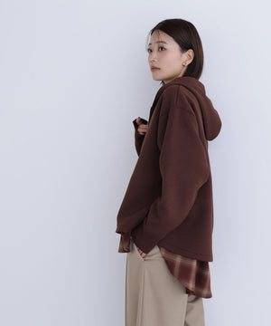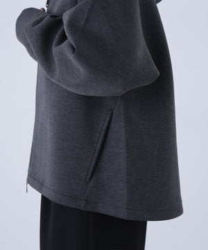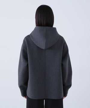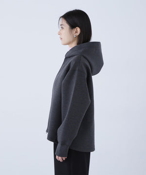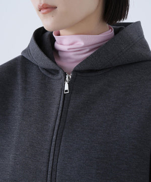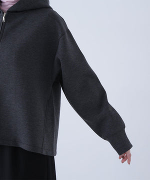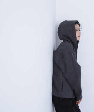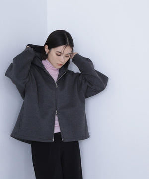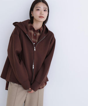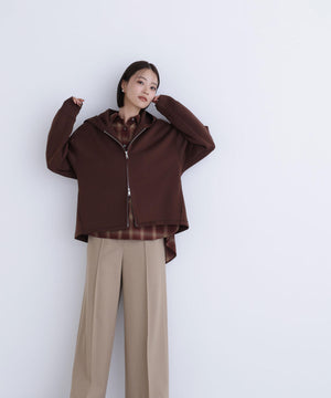 前後差のある裾とふわりと広がるテントラインシルエットが特徴のパーカー。程よいボリューム感で、体型をさりげなくカバーします。金属の逆開きファスナーを使用した、バータイプの引手がきらっとポイント。サイドはシームポケット付きで、すっきりとした見た目と実用性を両立。1枚で着映えを叶えてくれる、存在感のあるデザインです。