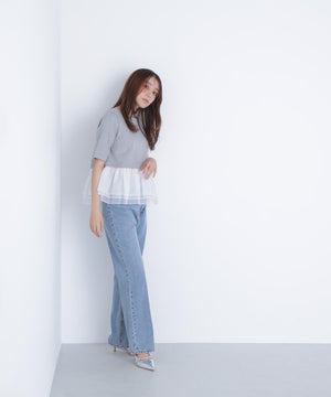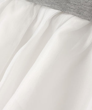 高密度でフラットな表面感がしなやかなカットソー素材と、程よいハリがありフレアがキレイに出るシフォン素材を使用しています。