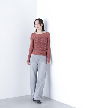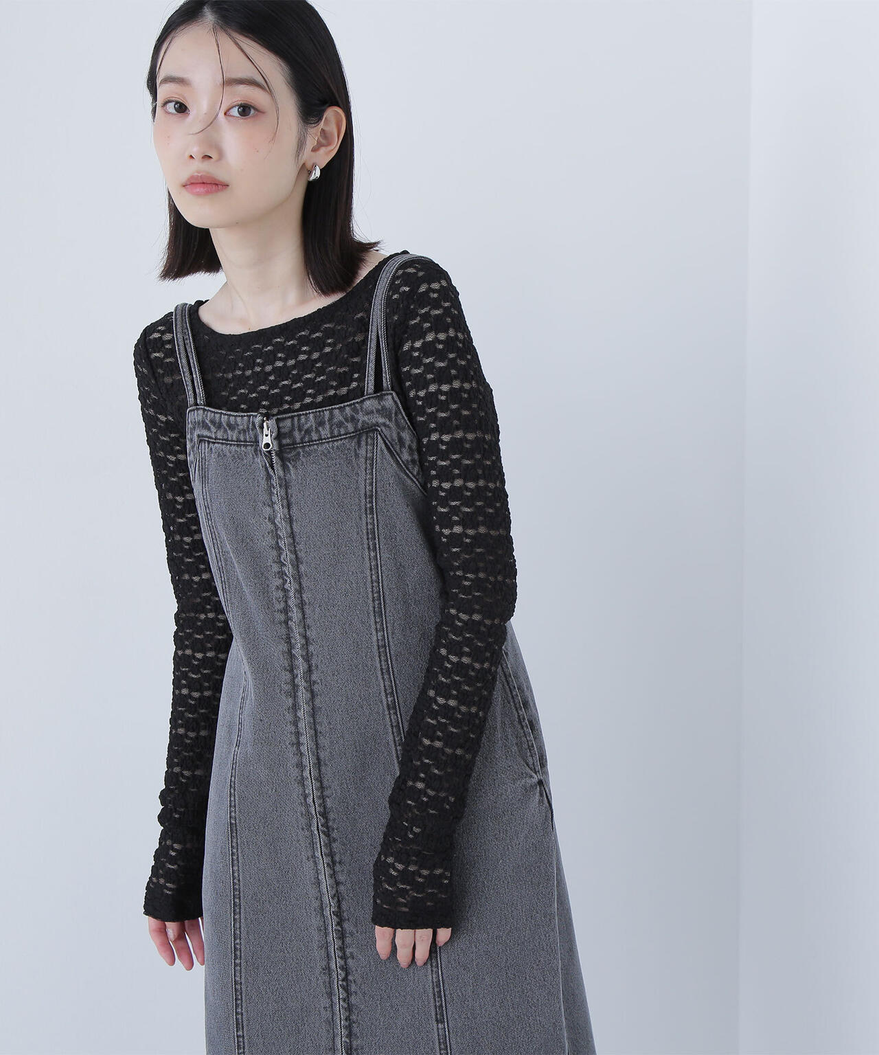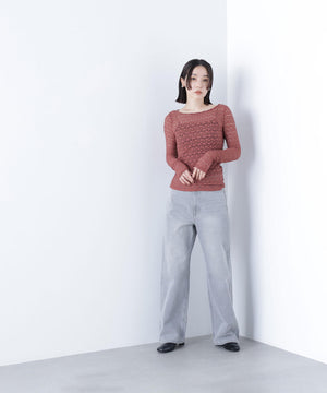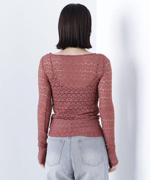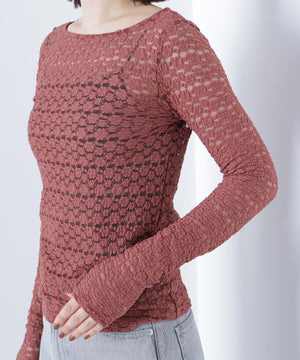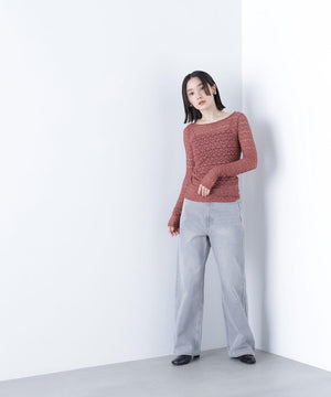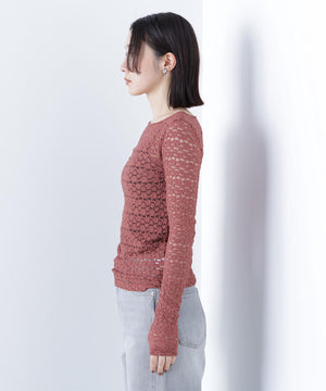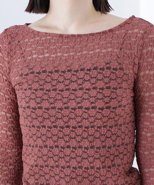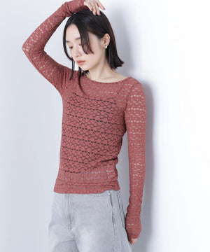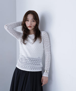 ベーシックなデザインのレースカットソートップス。ストレッチ性があり着心地抜群なアイテムです。1枚着としてもレイヤードのインナーとしても活躍。透け感がある素材のため、お持ちのインナーと合わせるのがおすすめです。