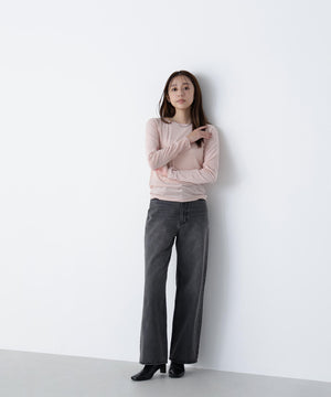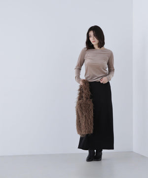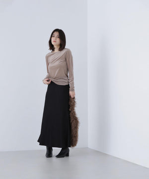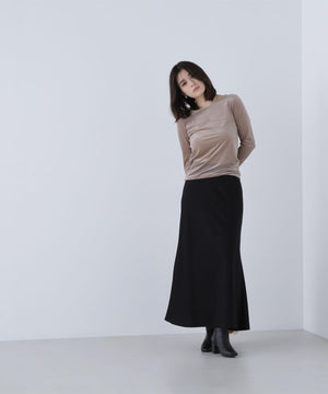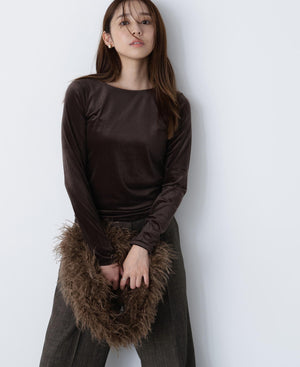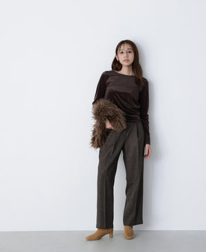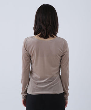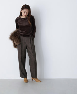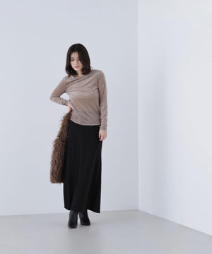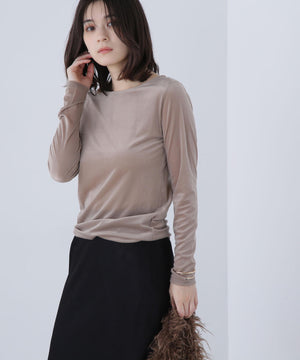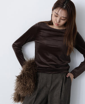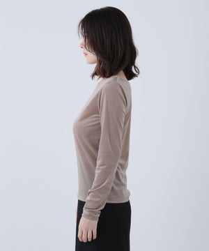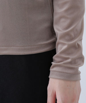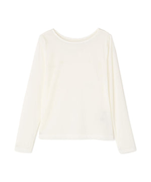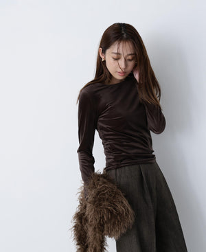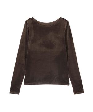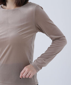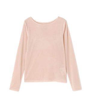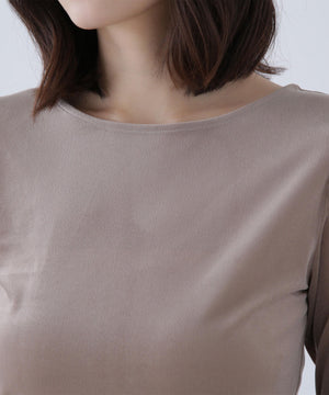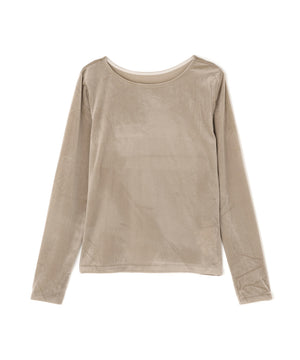 1枚あると便利なベーシックなベロアカットソー。柔らかく伸縮性のある素材なので着心地が良いです。1枚着としてもレイヤードのインナーとしても着回せるデザインです。