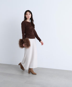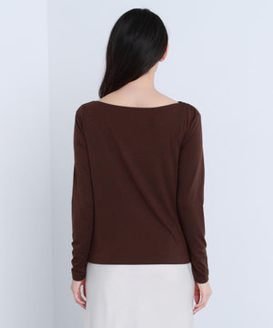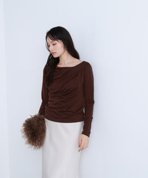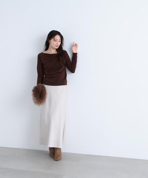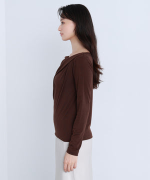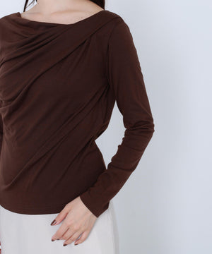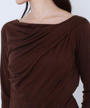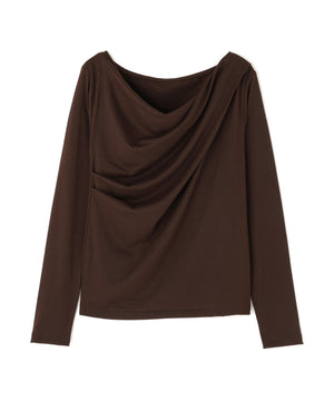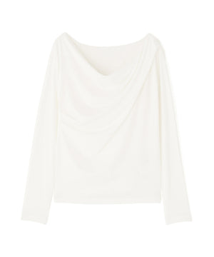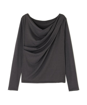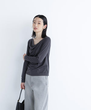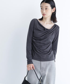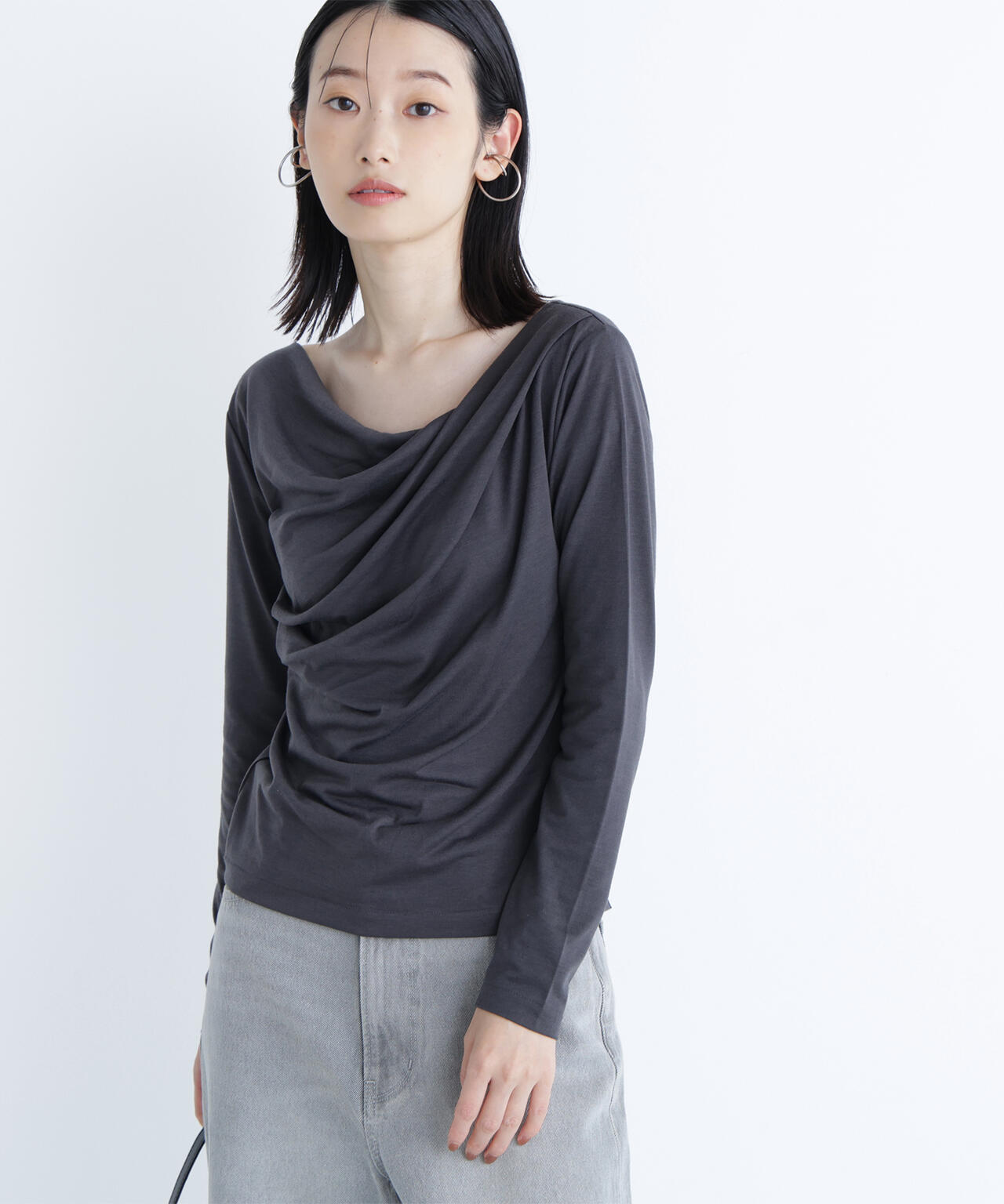 ドレープラインがキレイなカットソー。程よい肉感で暑い秋にぴったりな素材感です。カジュアルとキレイめボトムスにも合わせやすいディテールが魅力。デコルテが開いた抜け感のあるデザインなので、女性らしく着ていただけます。
