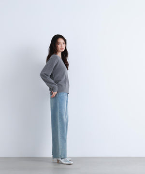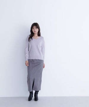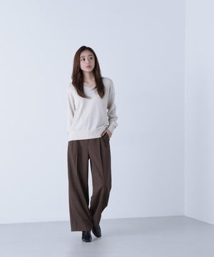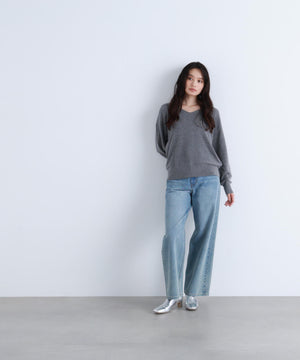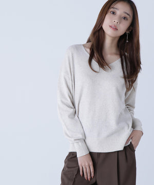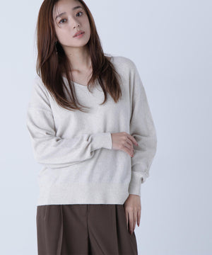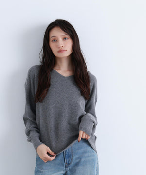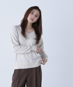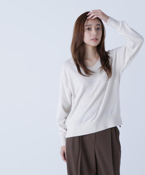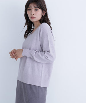 NBB定番人気ふわっとしたタッチが特徴のFOX混の糸を使用したニットプルオーバー。すっきりとしたVネックのニットプルオーバーは、厚すぎない肉感と程よいドロップショルダーで冬のコートインにも着やすいデザイン。フォルム感のあるボクシーなシルエットは抜け感があり、リラクシーな着心地です。すっきりとしたボトムスとのコーディネートがおすすめです。