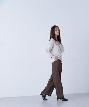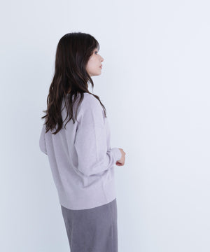 ウールとストレッチの効いた糸をブレンドしたFOX混の素材で形態安定性もある糸を使用しています。ふわふわと柔らかいタッチと、軽くて暖かい風合いの素材で、天竺編みで編み立てています。