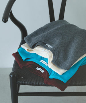 昨年人気だったシンプルなダブルジャガードニットが再登場!袖口と裾は太幅リブにして、シンプルながらも退屈しないデザインに。筒形のまっすぐな袖はクロップド丈と相性バツグンで、今の気分にぴったりなバランスです。今年はキャッチーなターコイズブルーカラーがとくにオススメ。ボトムスを選ばずスカートでもパンツでも着まわせる便利なアイテムです。