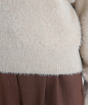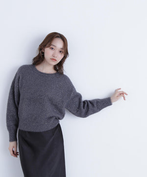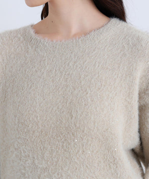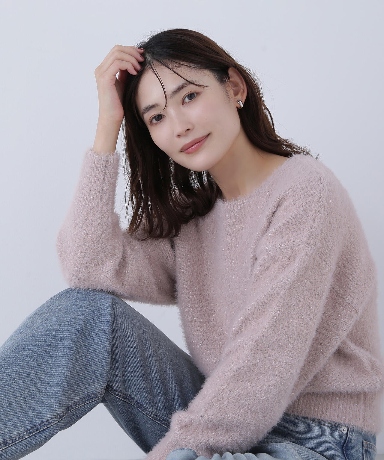 ふんわりとしたフェザーとスパンコールの輝きが、一枚で季節感とトレンドを取り入れられる主役ニット。動くたびにスパンコールがきらめき、シンプルなコーディネートに華やかさをプラスします。程よい存在感で、カジュアルにもキレイめにも合わせやすく、幅広いスタイリングに活躍します。