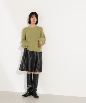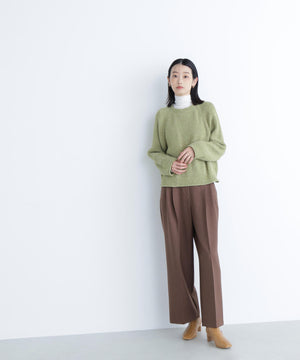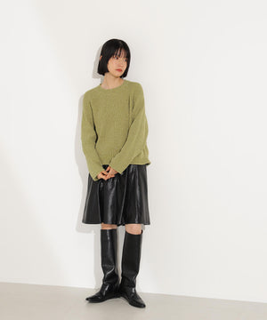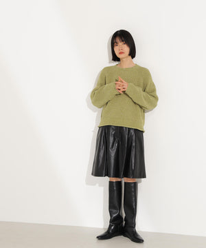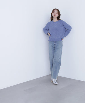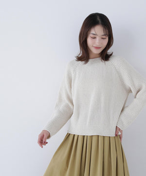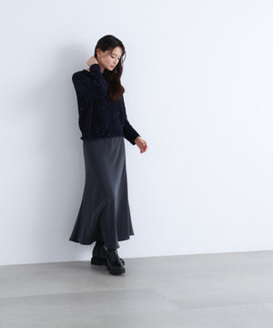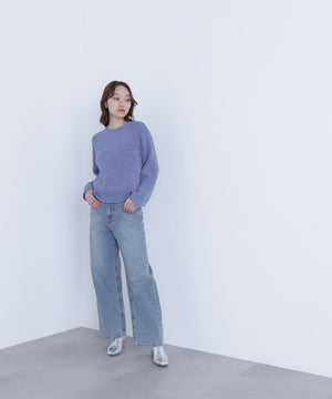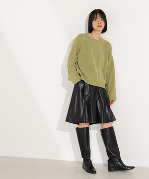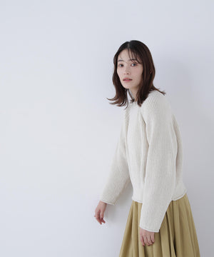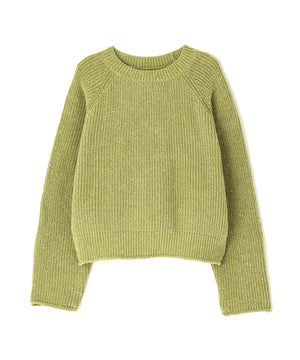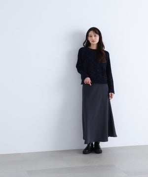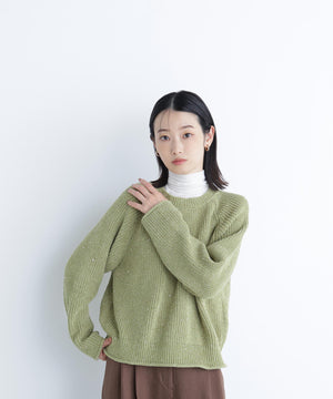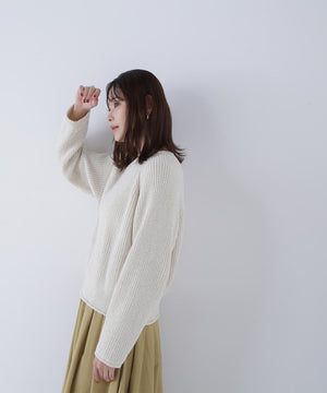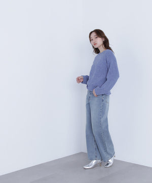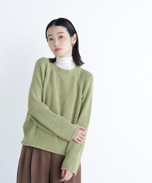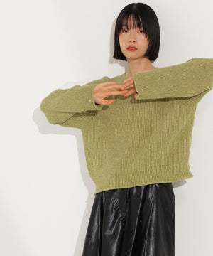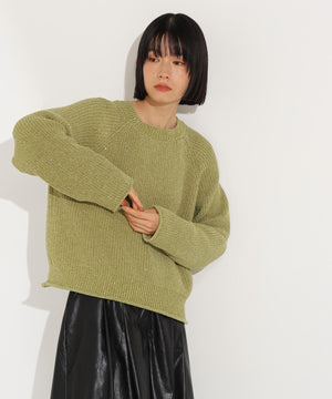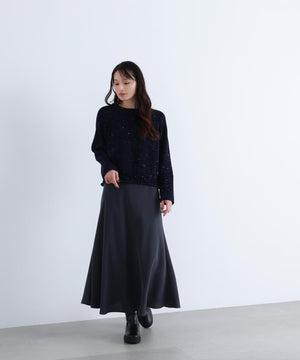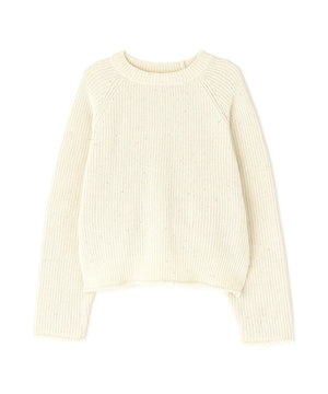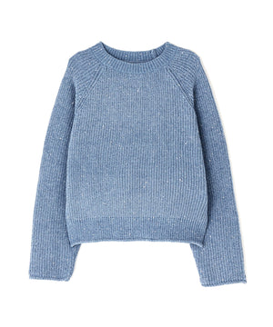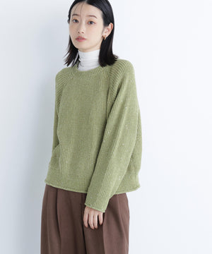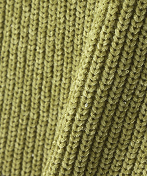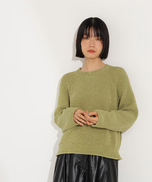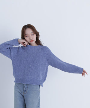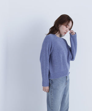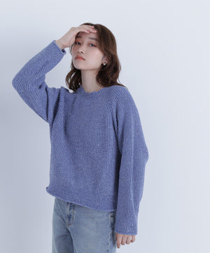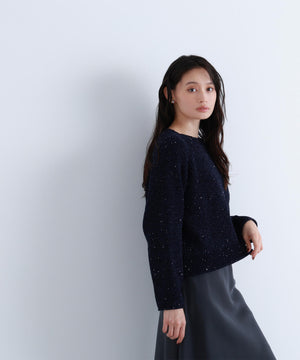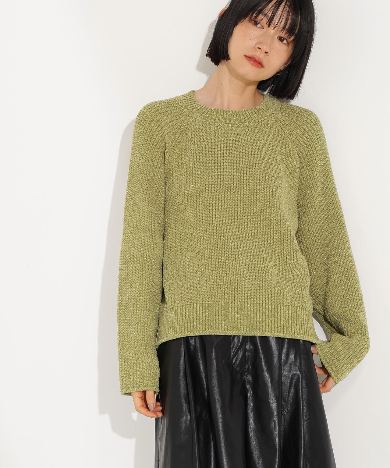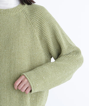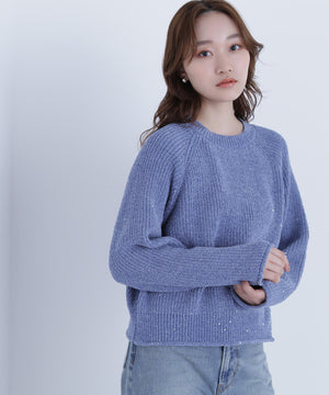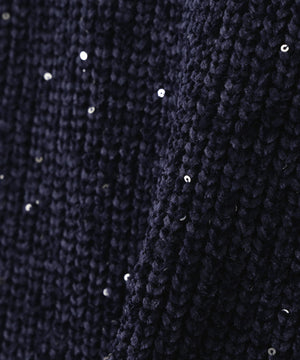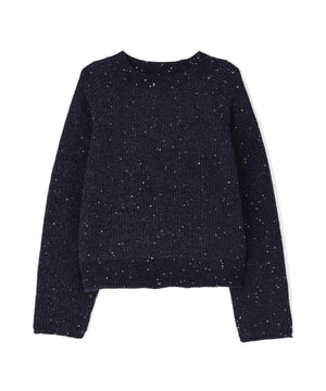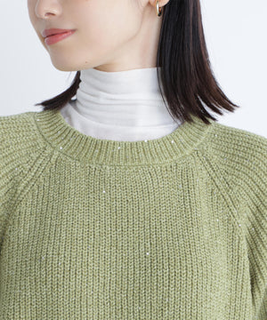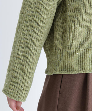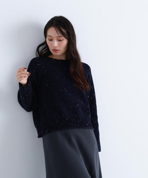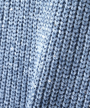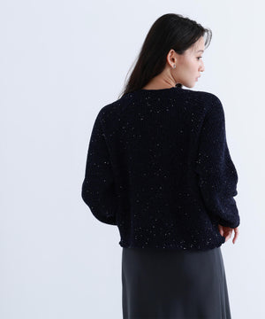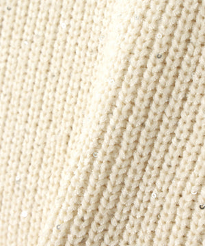 柔らかく暖かみのあるモール糸にスパンコールをミックスさせた片畦編みのニットです。