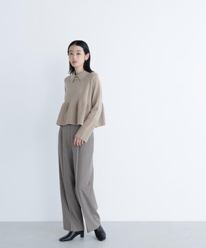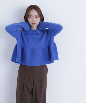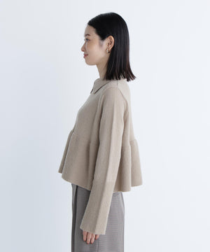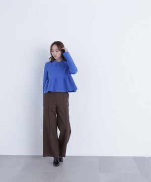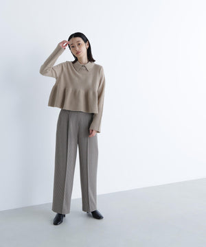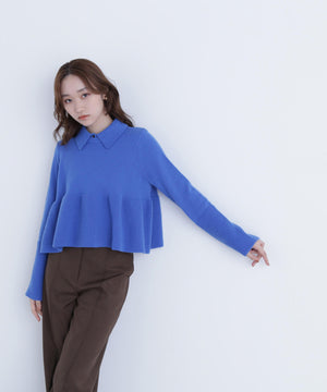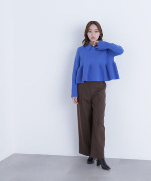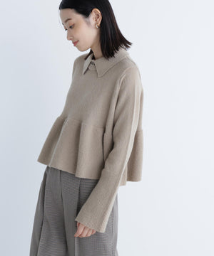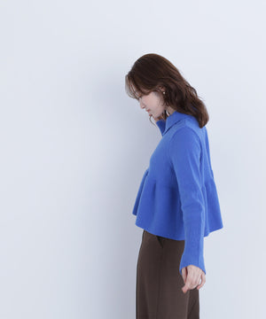 上品さとトレンド感を両立した襟付きデザインのペプラムニット。ウエストから広がるペプラムラインで女性らしいシルエットを演出します。柔らかな膨らみのある畦編みによって、立体感と暖かみをプラス。一枚で着映えるデザインは、パンツにもスカートにも相性良く着ていただけます。